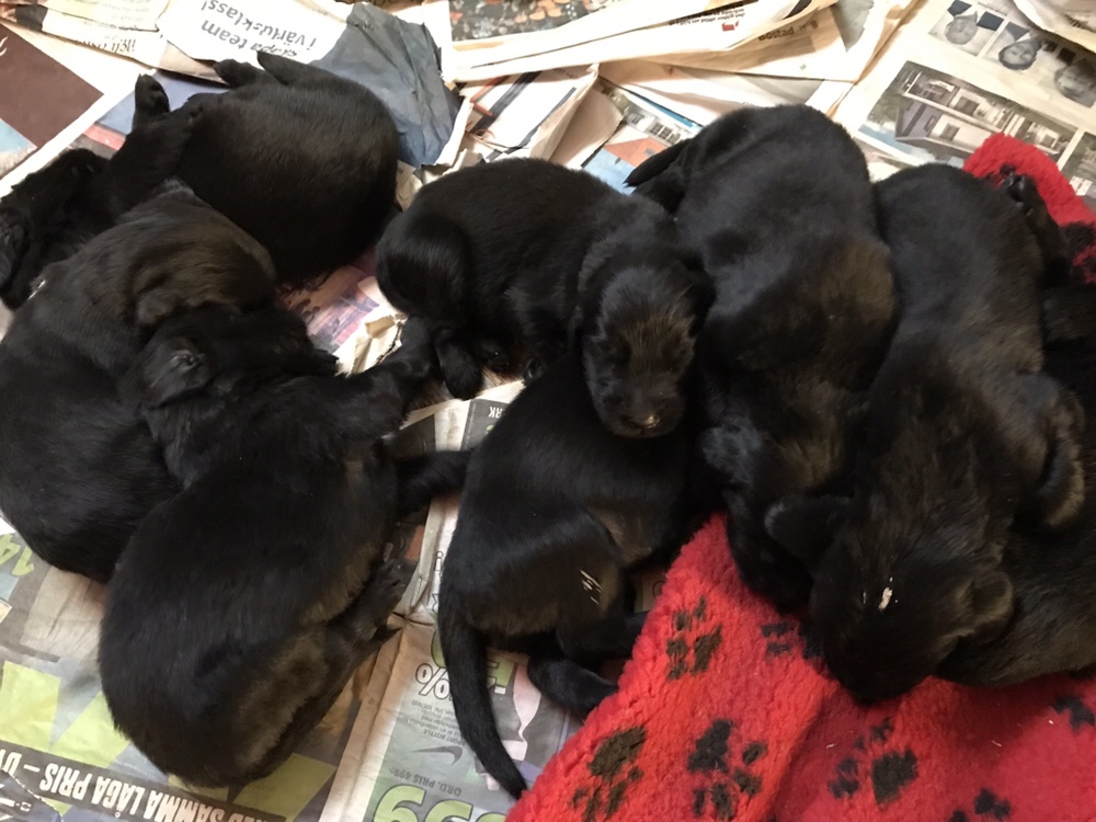Den 21 maj föddes 4 tikar och 4 hanar, alla är svarta.